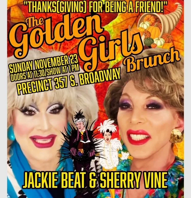 A very special Pride edition of our Golden Girlz Brunch starring Jackie Beat as “Dorothy” and Sherry Vine as “Blanche”. Live singing, comedy, trivia, prizes and more!